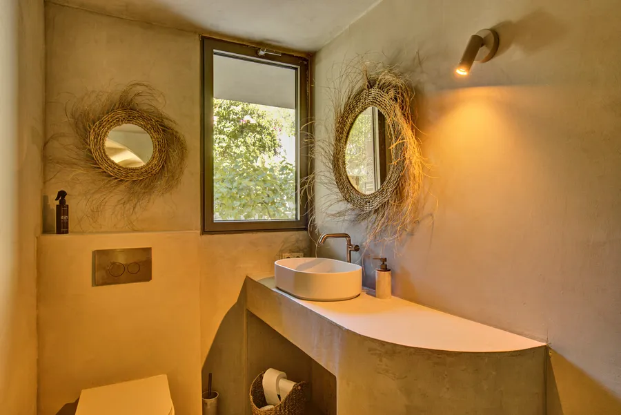 Un aseo completa la planta. Las terrazas se conectan y descienden hacia el jardín y